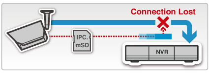 When the NVR and IP cameras are disconnected, the recording task will switch to the cameras, and the recordings are saved to the microSD cards of the cameras. When the NVR and IP cameras are re-connected, the recordings saved in the microSD cards will transfer to the NVR and save in the hard disks without changing the original recordng time. Users could still search the recordings they want by time on the NVR.