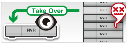 A proportion of FOS NVRs will be assigned as failover servers to the whole surveillance system. Usually 1 FOS NVR shall be worked with 7 NVRs. When any of the NVRs is down, the FOS NVR will soon take over all the works the NVR was doing to keep the whole system working properly. Users could be notified of this take-over event by checking the health check on CMS, and take necessary actions.